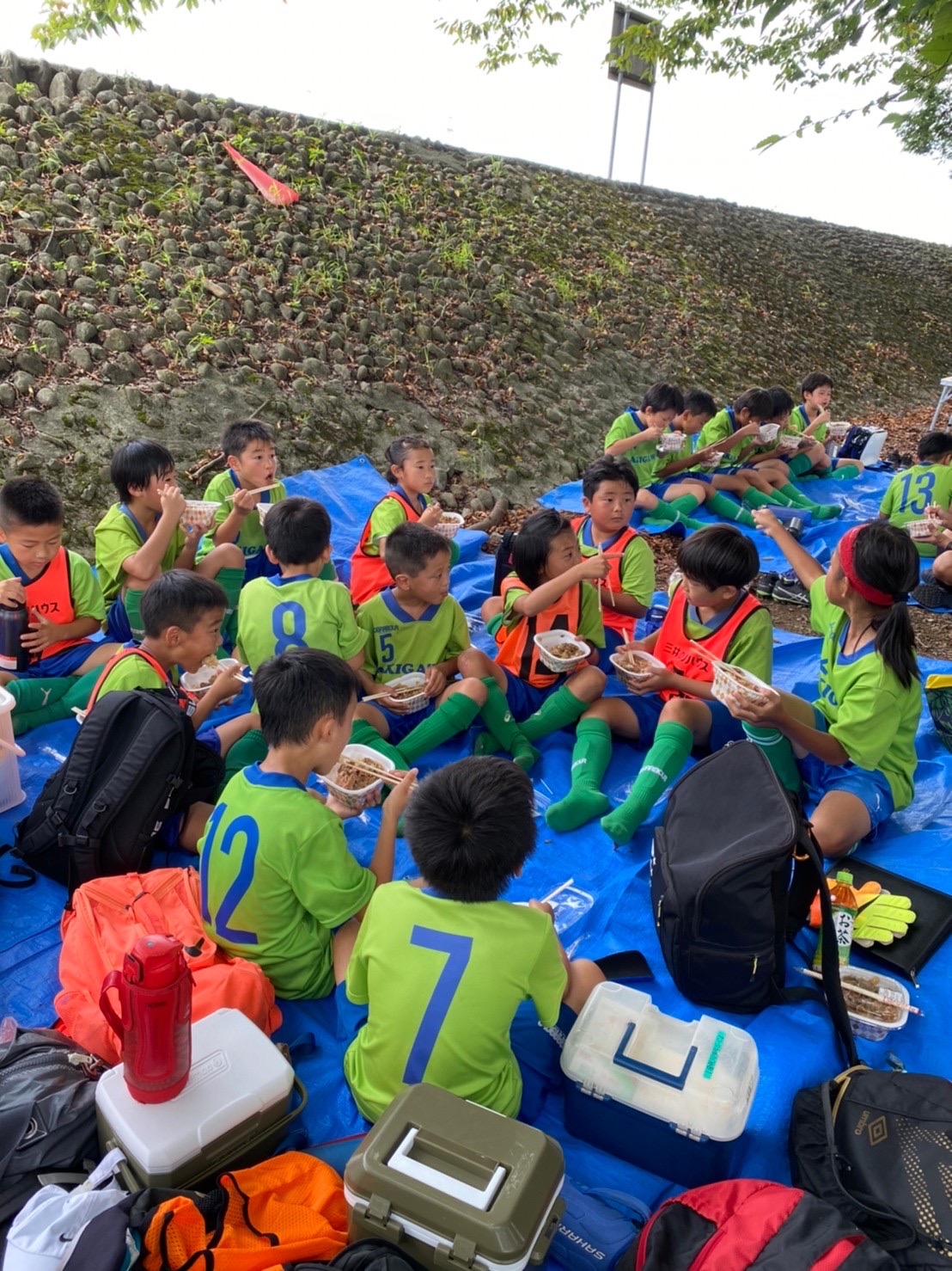 2日目は朝食を取った後、施設内のグランドで練習を行い、汗を流しました。昼前に施設を出て地元の公民会へ移動。公民館で昼食とビンゴ大会を実施し解散となりました。二日間で多くのイベントを実施することはでき、充実した合宿となりました。